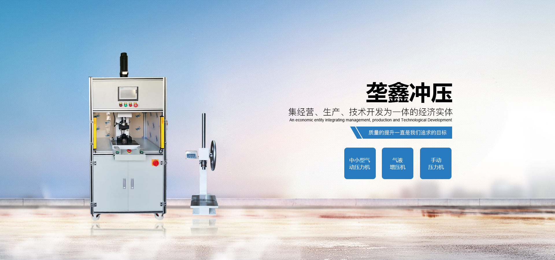 煙臺壟鑫沖壓設備有限公司是集經(jīng)營、生產(chǎn)、技術(shù)開發(fā)為一體的經(jīng)濟實體,專業(yè)致力于中小型壓力機、非標壓力機的設計開發(fā)和制造。在引進德國、日本等國家先進的鉚壓控制技術(shù)及機器設計理念的基礎(chǔ)上,結(jié)合相關(guān)行業(yè)的實際需要,開發(fā)出各種臺式、落地式氣動壓力機、手動壓力機、氣液增壓機、氣液增力缸、旋鉚機、無鉚釘鉚接機等鉚接設備。產(chǎn)品應用領(lǐng)域廣泛,適用于汽車零件、電子、電器、家電、包裝、五金、等行業(yè)。公司視質(zhì)量為生命,并一貫遵循對每一臺產(chǎn)品負責,對每一位用戶負責,真誠為您服務。 自公司成立以來,秉承“誠信,創(chuàng)新,專業(yè)”的經(jīng)營理念,以優(yōu)質(zhì)的產(chǎn)品,完善的售后服務,樹立良好的品牌形象,服務于廣大新老顧客。我們竭誠于各位同仁攜手并進,共謀發(fā)展。